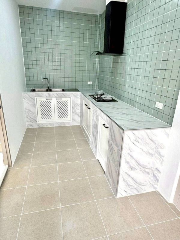 แอร์ 1 ตัว (12,000 BTUติดตั้งให้หลังโอน), เตาแก๊สและเครื่องดูดควัน, ซิงก์ล้างจาน