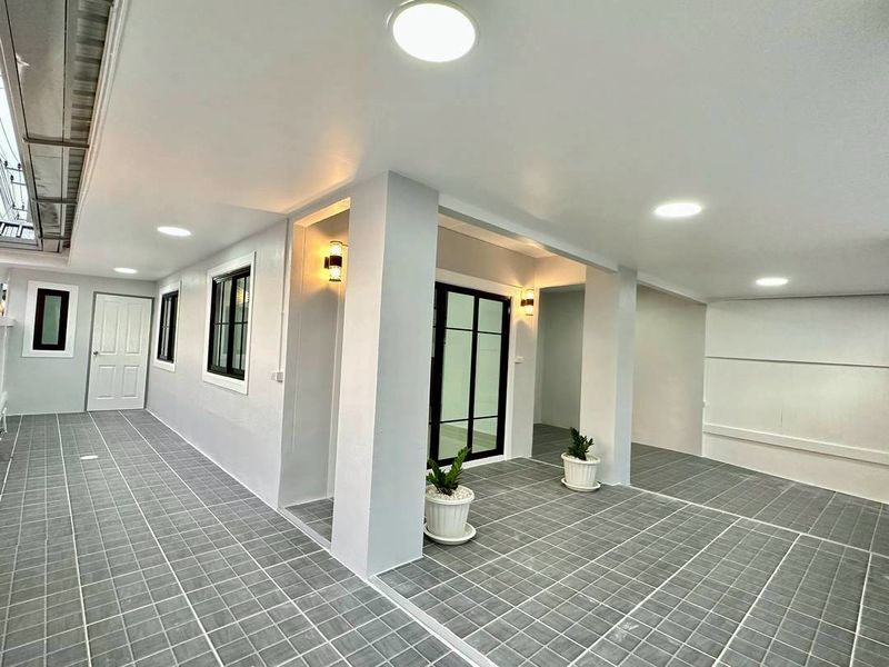 ????มีบริเวณข้างบ้าน//มีประตูเข้าบ้าน2 จุด ประตูบานเลื่อนนำรถจอดได้และประตูบานเล็กเดินเข้าบ้านได้สะดวก