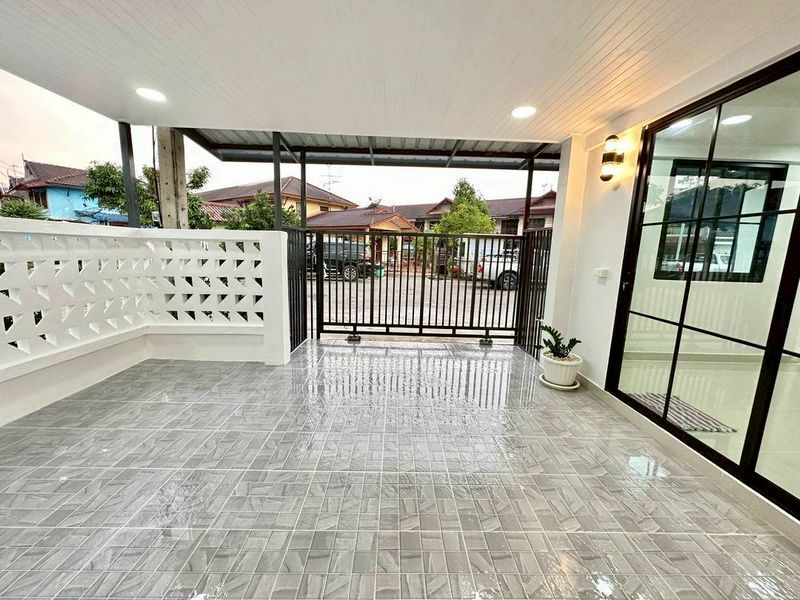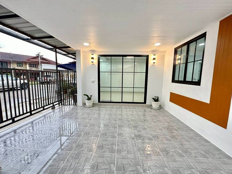 ???? หน้าบ้านกว้าง 8 เมตรจอดรถได้1คันและมีบริเวณนั่งเล่นหน้าบ้าน
